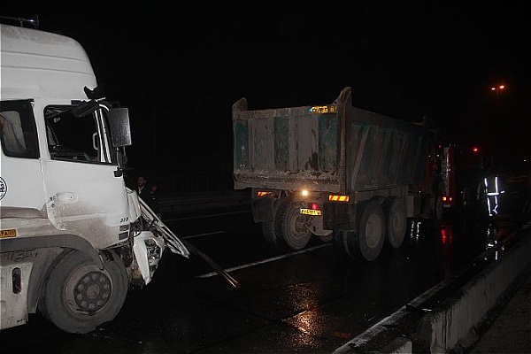 دو دستگاه کامیون بامداد امروز در بزرگراه فتح(جاده قدیم کرج) به شدت با یکدیگر برخورد کردند که راننده یکی از آنها مجروح و در داخل اتاقک آن گرفتار شد.